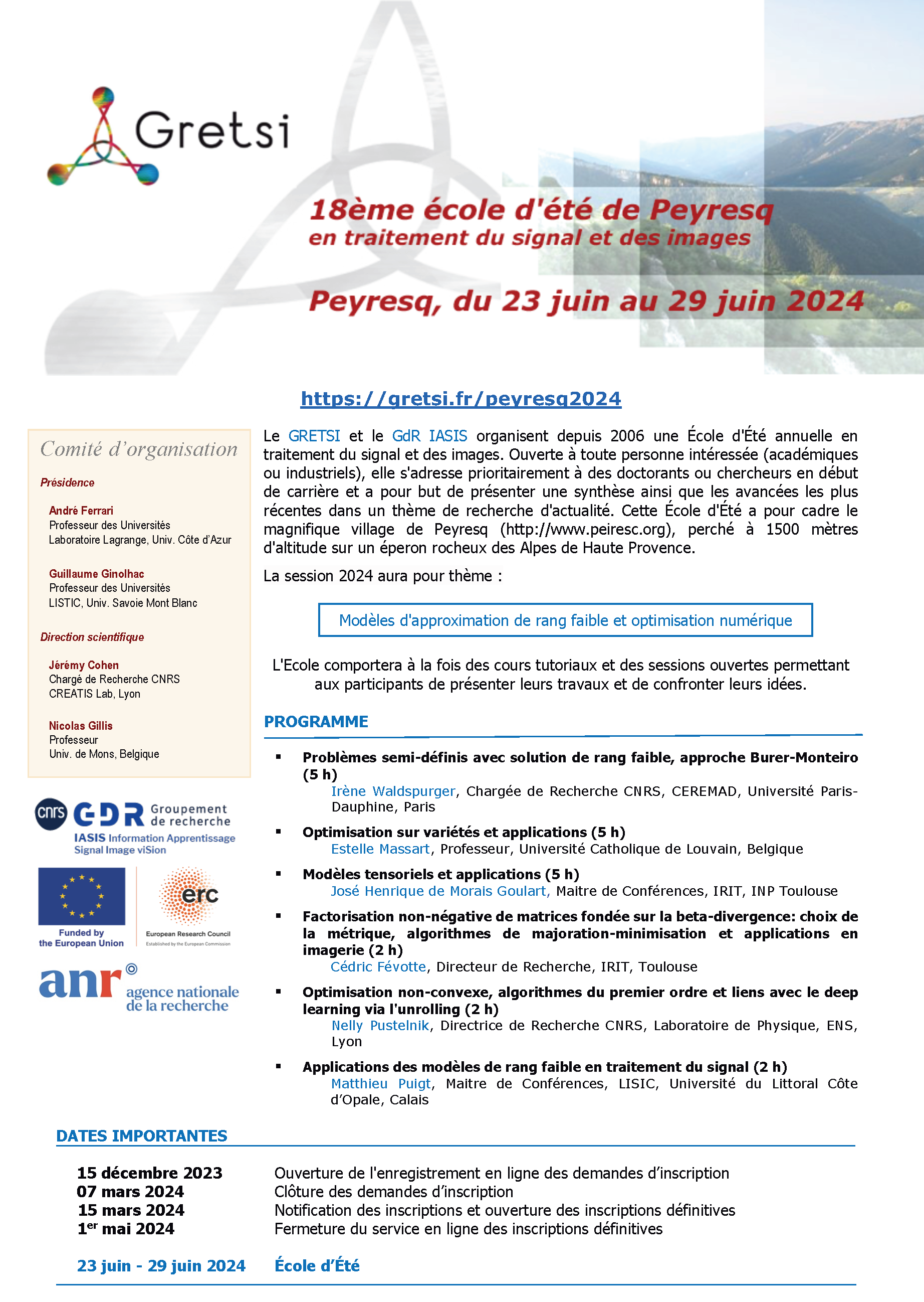 18ème Édition de l'École d'Été en Traitement du Signal et des Images